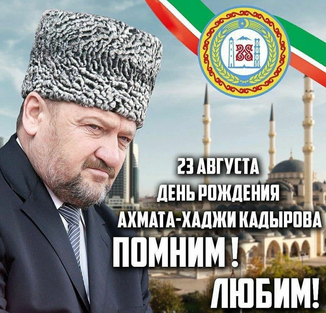Наш национальный Лидер, Первый Президент ЧР, Герой России Великий Ахмат-Хаджи Кадыров. 23 Августа День рождения Ахмат-Хаджи Кадырова.Это значимое событие для нашей Республики! Великий Ахмат-Хаджи Кадыров был уникальным человеком: грамотным руководителем и истинным мусульманином, отдавшим свою жизнь ради мира на родной земле. Он Легендарный политик и духовный лидер чеченского народа, страны и мира, он бросил вызов международному терроризму. Жизнь и деятельность Ахмат-Хаджи были посвящены установлению мира на чеченской земле и благополучию ее жителей. И о его Пути вспоминают ближайшие соратники, политики, известные деятели культуры и жители республики ЧР