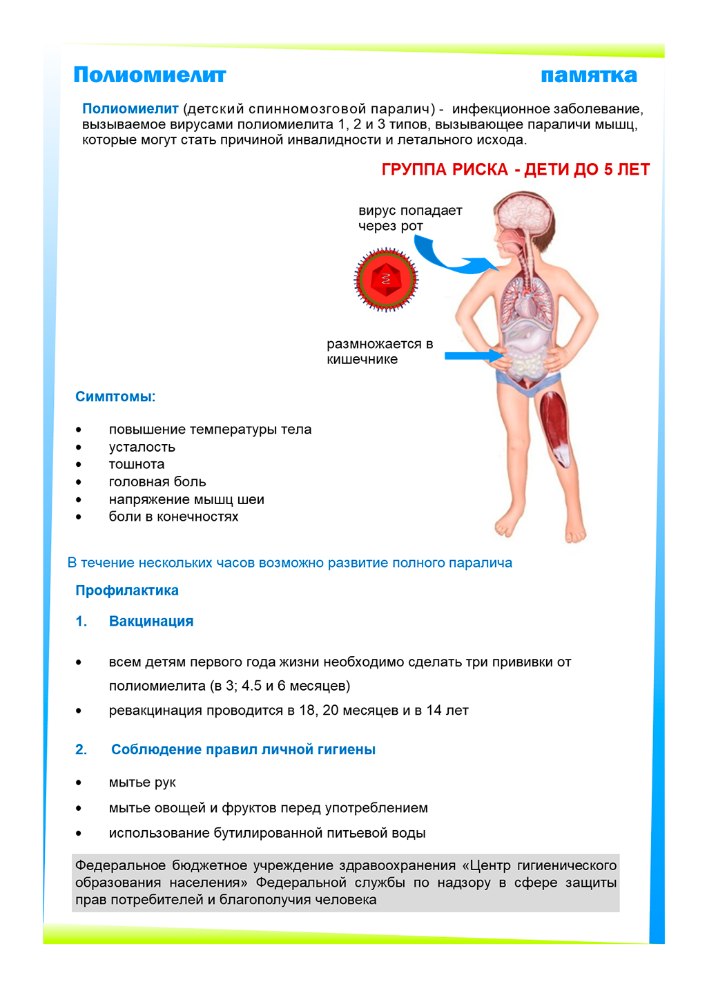 Полиомиелит (или детский паралич) - острое инфекционное заболевание преимущественно, поражающее центральную нервную систему, в первую очередь спинной мозг. Заболевание приводит к развитию параличей, приводящих заболевшего ребенка к инвалидизации.