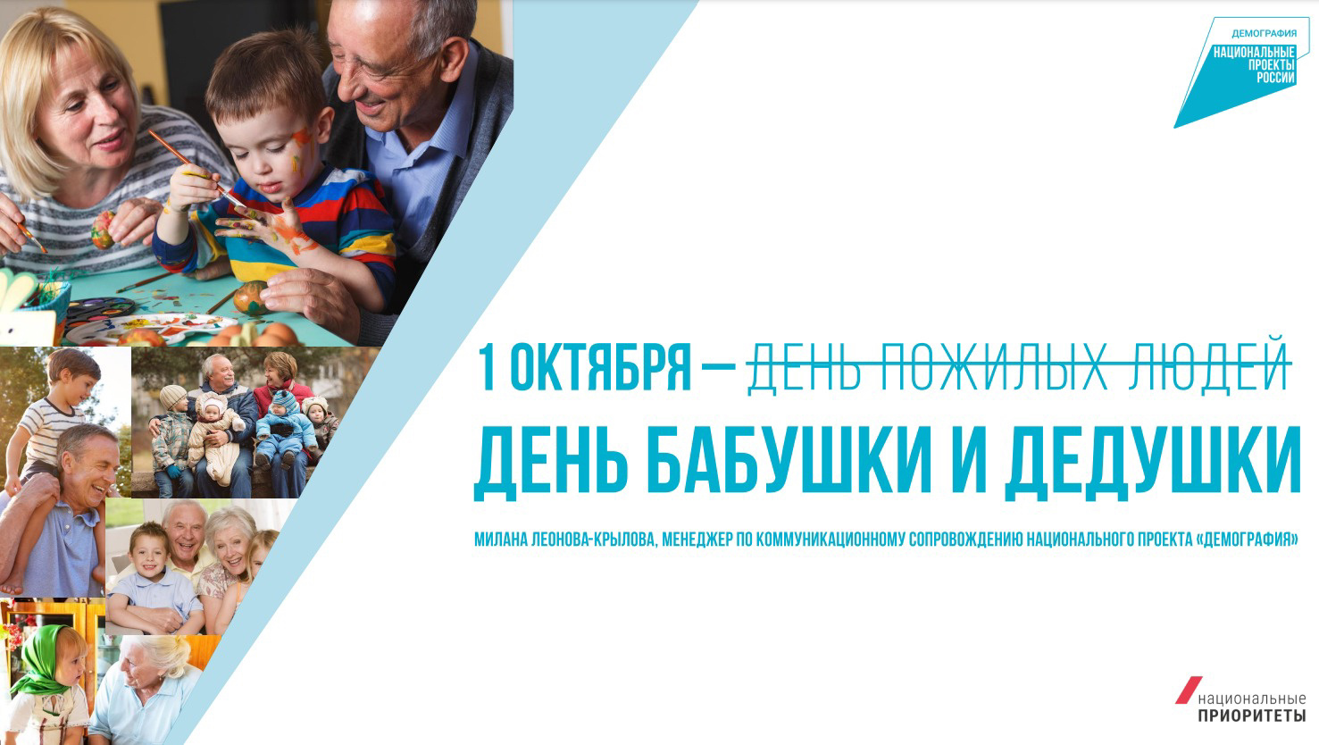 1 октября в России впервые отпразднуют«День бабушки и дедушки» 1 октября в Международный день пожилого человека в России впервые проведут акцию «День бабушки и дедушки», при поддержке националь