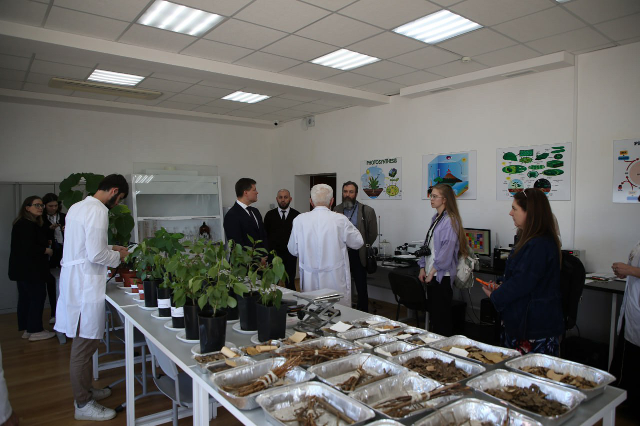 В Инжиниринговом центре «Карбон» ЧГУ им. А. А. Кадырова участникам предоставили возможность посетить ранее закрытые для широкой аудитории агробиотехнологические лаборатории, созданные по программе «Приоритет 2030» нацпроекта «Наука и университеты». Ученые показали гостям способы проведения исследований по генетической модификации растений, а также возможности клонирования и выращивания деревьев из пробирок.