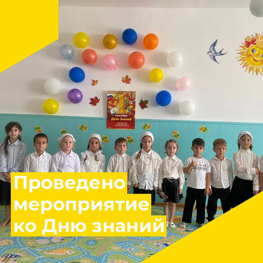 В старшей группе проведено мероприятие ко Дню знаний. Это событие прошло в теплой и праздничной атмосфере, где дети с радостью встречали новый учебный год. В программе мероприятия были включены различные конкурсы, игры, а также выступления детей, в которых они показывали свои таланты.